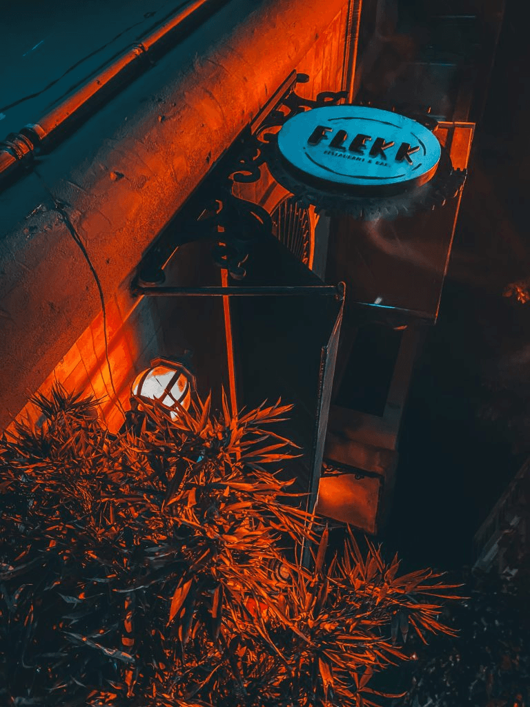 Beyoğlu’nun yenilerinden Flekk! Farklı dekorasyonda, gece eğlenmek ve farklı kokteyller denemek istiyorum diyorsanız keşfetmeniz gereken ilk yerlerden biri. Kokteyllerin hiçbirinde şurup kullanılmıyor ve şefin kendi tarifi. En çok tercih edilenler Gronn, St Patrick ve Mörklagga…